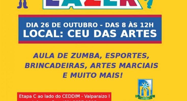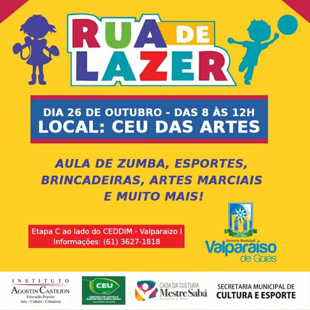 Neste sábado (26/10), o CEU das Artes, na área especial da Etapa C, recebe a Rua de Lazer. O evento é organizado pela Secretaria de Cultura e Esporte do município de Valparaíso.