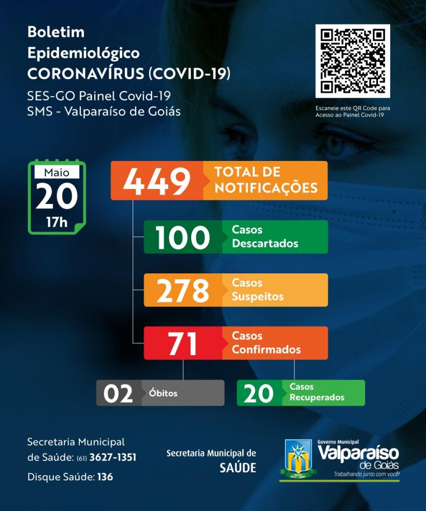 71º Caso: Paciente do sexo masculino, 09 anos, com resultado da rede privada do DF. Encontra-se em isolamento domiciliar e em acompanhamento pela equipe da Secretaria Municipal de Saúde.