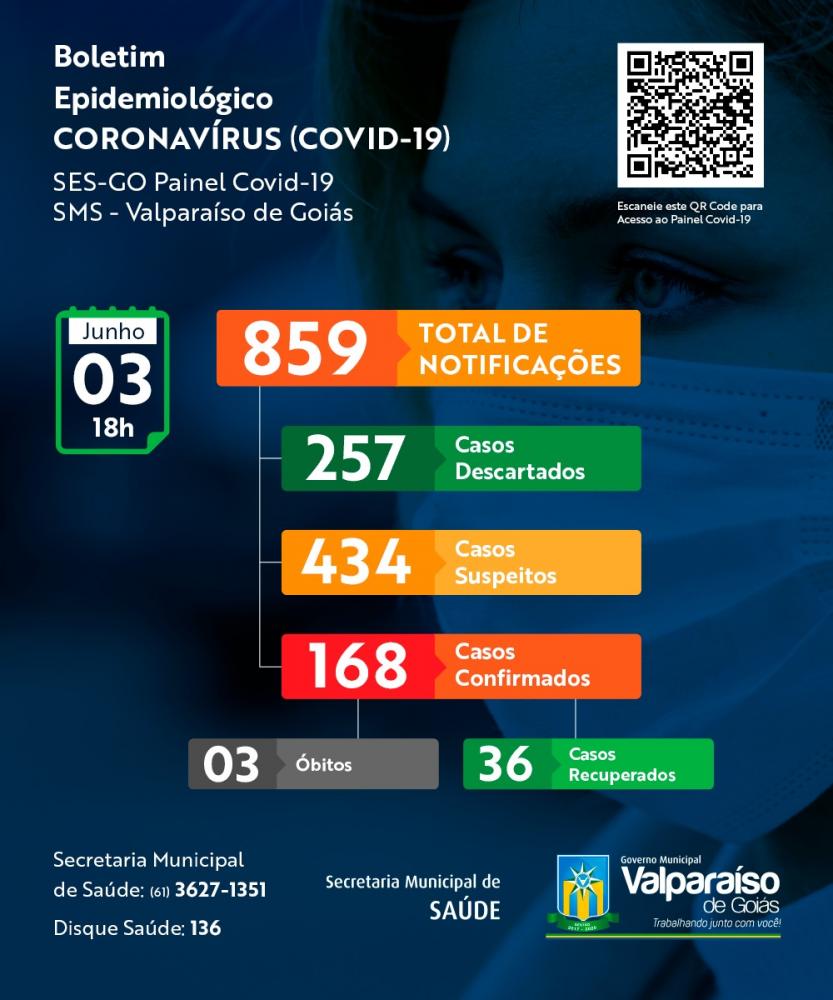 155º Caso: Paciente do sexo masculino 32 anos, com resultado da rede pública do GO. Encontra-se em isolamento domiciliar e em acompanhamento pela equipe da Secretaria Municipal de Saúde.