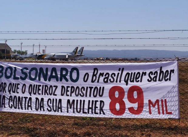 Entre as frases selecionadas estão “Bolsonaro, o Brasil quer saber por que o Queiroz depositou 89 mil na conta da sua mulher” e “Obrigado, Bolsonaro, pela alta do dólar, alta dos combustíveis e o arroz custando 30 contos”.