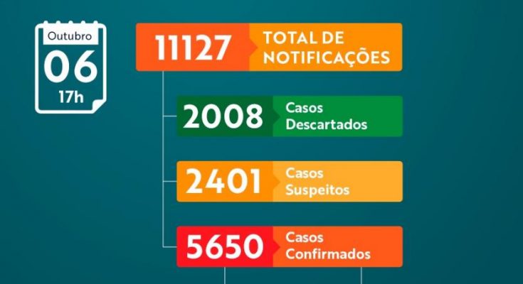 5633° Caso: Paciente do sexo feminino 12 anos, com resultado da rede pública do GO. Encontra-se em isolamento domiciliar e em acompanhamento pela equipe da Secretaria Municipal de Saúde.