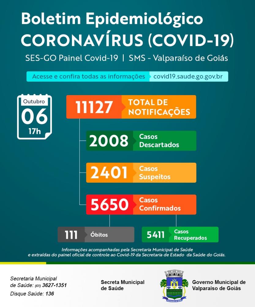 Dados obtidos até às 17h do dia 06 de outubro de 2020.