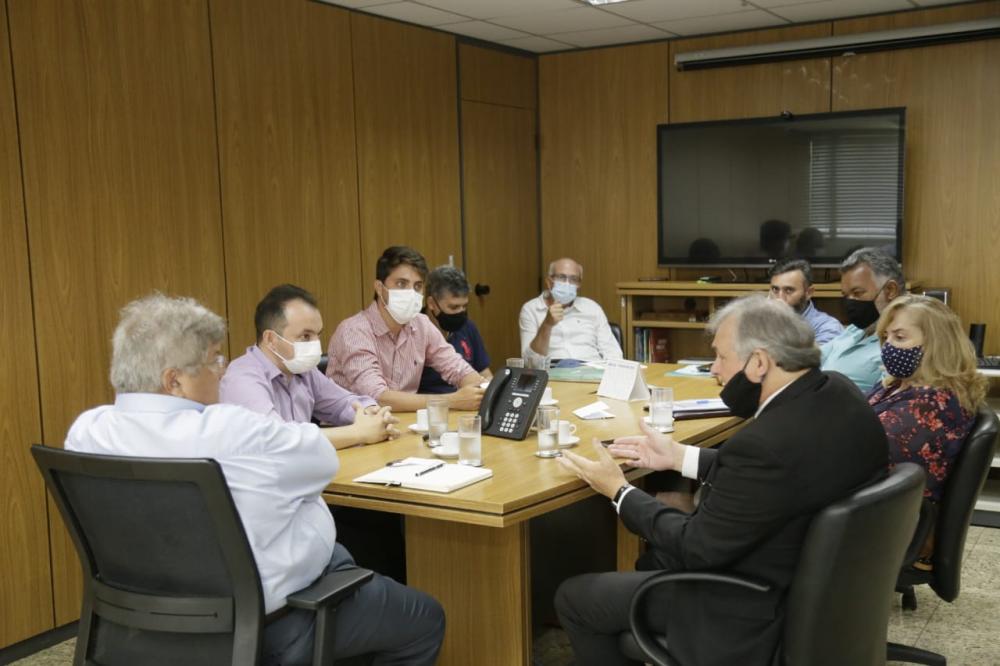 O Prefeito Pábio Mossoró, acompanhando do Secretário Municipal de Infraestrutura, Habitação e Serviços Urbanos, Dr. Marcus Vinícius, receberam as boas-vindas do Secretário Nacional de Saneamento, Pedro Maranhão.