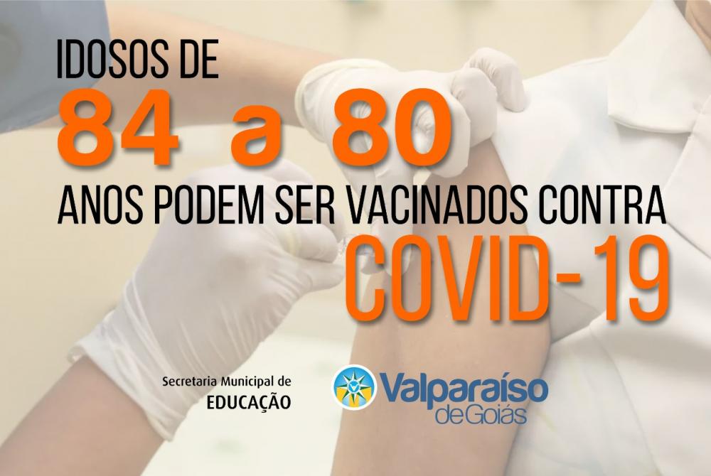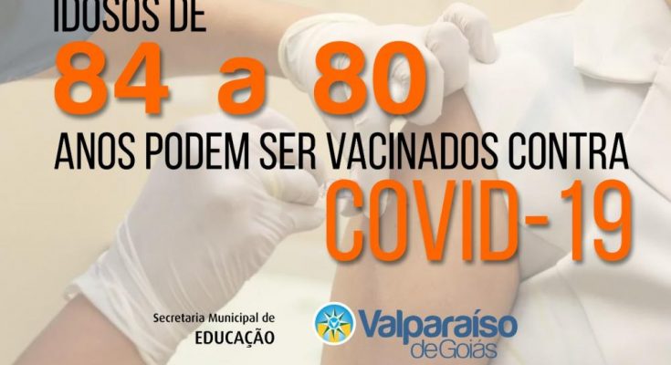 A Prefeitura de Valparaíso de Goiás, por meio da Secretaria Municipal de Saúde (SMS), começou a vacinar pessoas de 84 a 80 anos de idade.