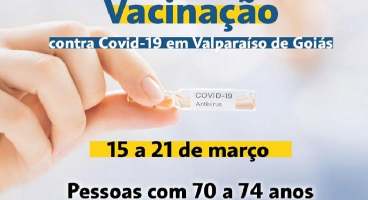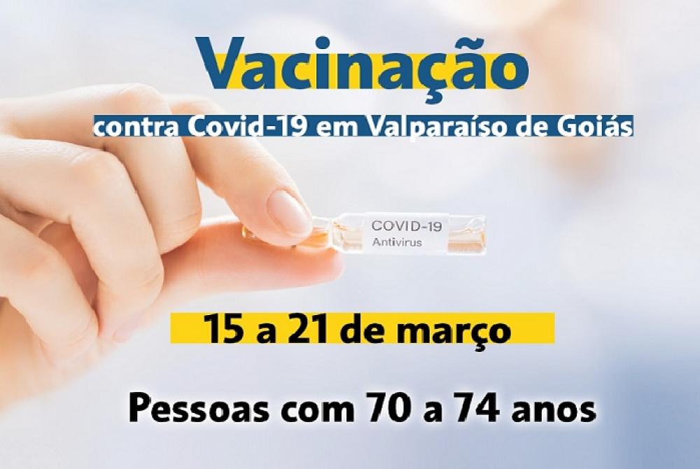 A Secretaria Municipal de Saúde (SMS) começa nesta segunda-feira, 15 de março, a vacinar os idosos de 70 a 74 anos, em Valparaíso de Goiás.