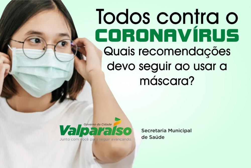 O uso de máscara é obrigatório e essencial no combate e prevenção da Covid-19, no município de Valparaíso de Goiás, seja em espaços públicos ou locais de uso coletivos, ainda que privados.