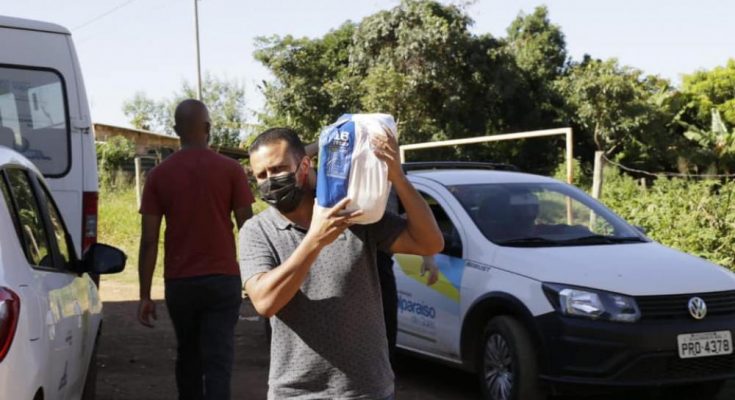 Neste sábado, 24 de abril, o Governo da cidade de Valparaíso de Goiás, por meio da Secretaria Municipal de Assistência Social e Cidadania, entregou cestas básicas às famílias que se encontram em vulnerabilidade social, no Pacaembuzinho.