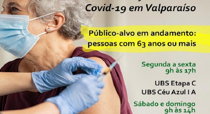 A campanha de vacinação contra a Covid-19 avança mais uma etapa, em Valparaíso de Goiás. A partir desta segunda-feira (26/04), serão contemplados os idosos com 63 anos de idade ou mais.