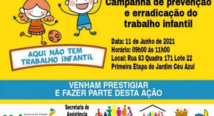Com objetivo de conscientizar a população sobre os malefícios do Trabalho Infantil, o Governo da cidade, por meio da Secretaria de Assistência Social e Cidadania, junto ao Centro de Referência da Assistência Social (Cras), o Centro de Referência Especializado de Assistência Social (Creas) e o Sistema Único de Assistência Social (SUAS), promoverá uma campanha de Prevenção e Erradicação do Trabalho Infantil, nesta sexta-feira (11).