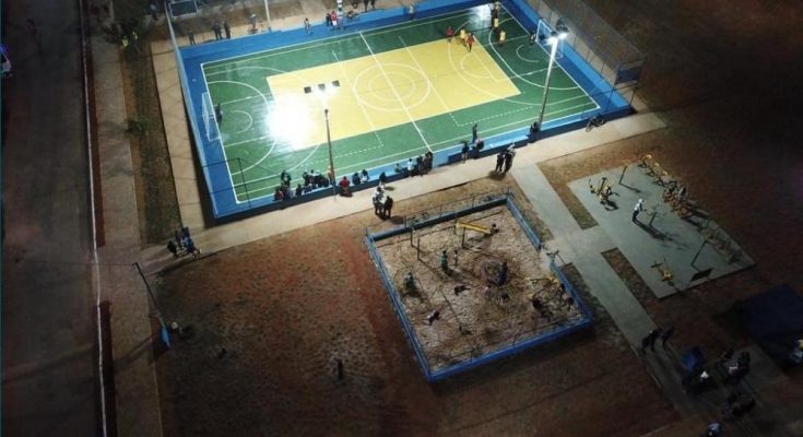 O espaço público dispõe de cerca de 5.600 metros, quadras de futsal e de areia, parquinho para a crianças e refletores com lâmpadas de LED.