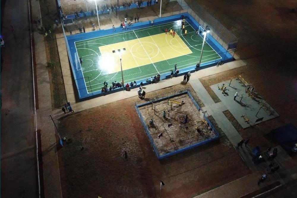 O espaço público dispõe de cerca de 5.600 metros, quadras de futsal e de areia, parquinho para a crianças e refletores com lâmpadas de LED.