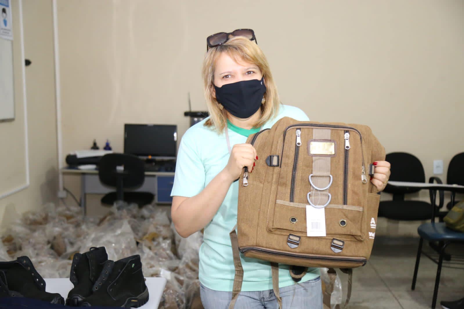 Durante solenidade realizada na Escola de Governo, foram entregues 03 camisetas, 01 mochila, 01 boné, 01 colete e 02 pares de botas. Os itens são essenciais para otimizar o trabalho dos agentes.