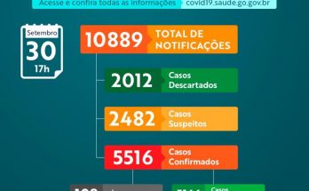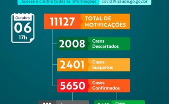 Dados obtidos até às 17h do dia 06 de outubro de 2020. CASOS: 5617° Caso: Paciente do sexo feminino 33 anos, com resultado da rede pública do GO. Encontra-se em …